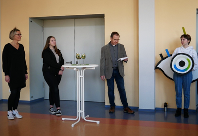 Die Eröffnung folgte dann am Dienstag, den 22.11.2022, mit großer Teilnahme seitens der Schüler_innen und Lehrer_innen. Frau Neuhaus begrüßte die Gäste, woraufhin Jessica Stark im Namen der Klasse ein paar Worte zur Ausstellung sagte. Im Anschluss eröffnete Herr Oberschelp mit einer Rede im Namen der Schulleitung die Fotoausstellung.