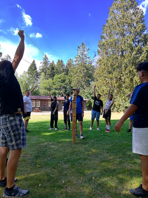 Bei der letzten Übung „Schatz im Säuresee“ konnten sie diese Gemeinschaft unter Beweis stellen. Der Schatz lag dabei in einem abgetrennten Bereich, der nicht betreten werden durfte. Die Klasse musste diesen Schatz nur mit Hilfe eines Baumes und eines Seils bergen.
