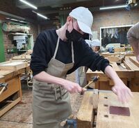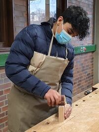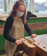 Schülerinnen und Schüler einer 9.Klasse der Käthe-Kollwitz-Realschule kommen am 15.02.2022 ins MINT-Labor am Leo, um in einem zweistündigen Schnupperkurs einen Smartphone-Halter aus Eschenholz zu fertigen.