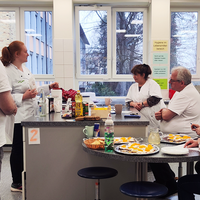 Das Team Fachpraxis der Abteilung Ernährung und Hauswirtschaft hat sich in einen Workshop mit dem Thema "Vegane Patisserie" genau mit dieser Frage beschäftigt. Sachkundige Unterstützung kam von der Konditormeisterin Jenny Thielking, die zahlreiche Tipps zum Ersetzen von tierischen Lebensmitteln geben konnte.
